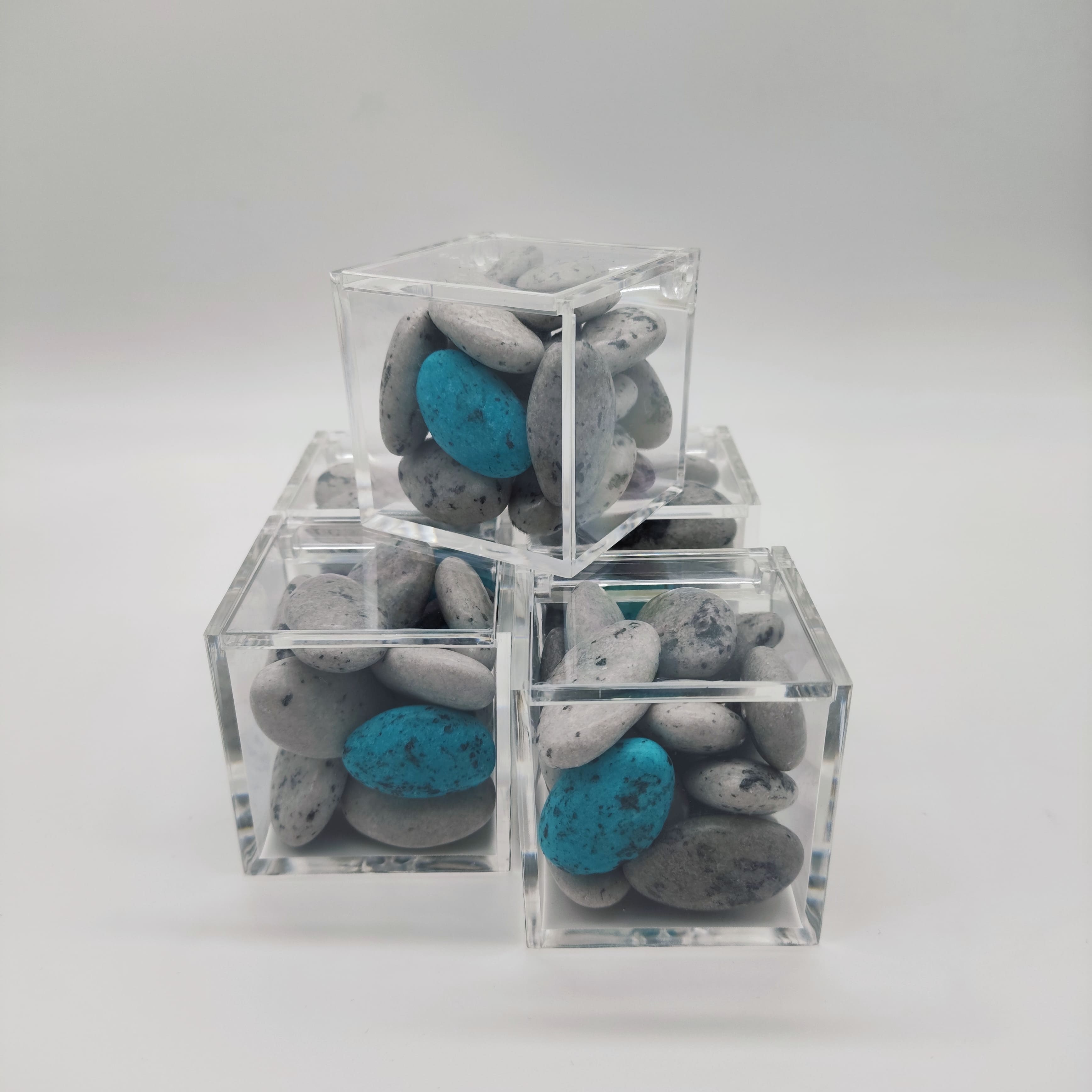 50g de Galets en Chocolat dans un mini coffret plexiglass.