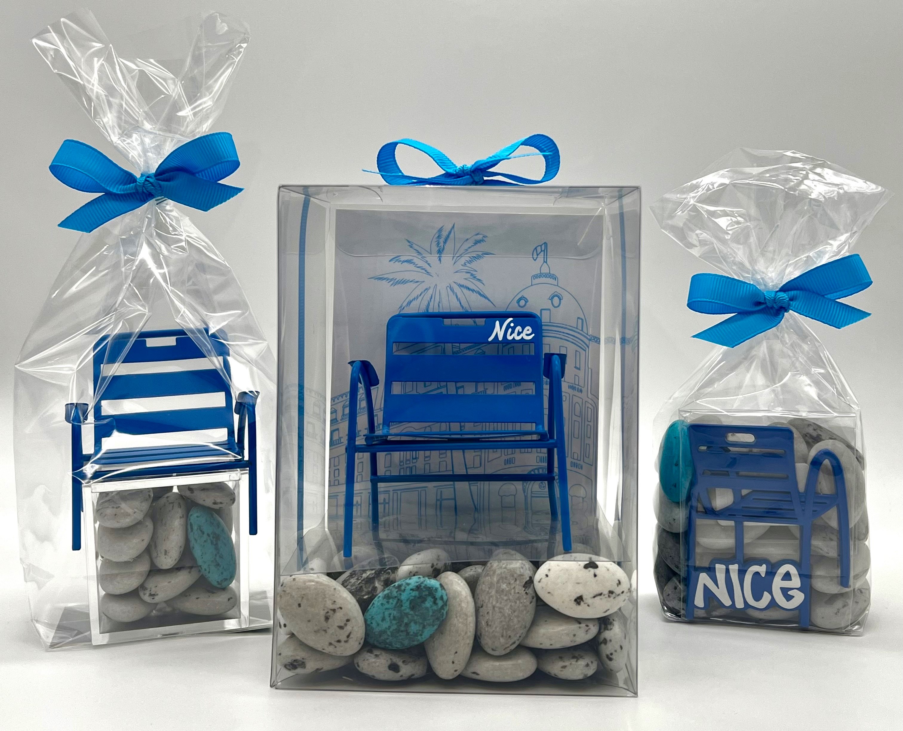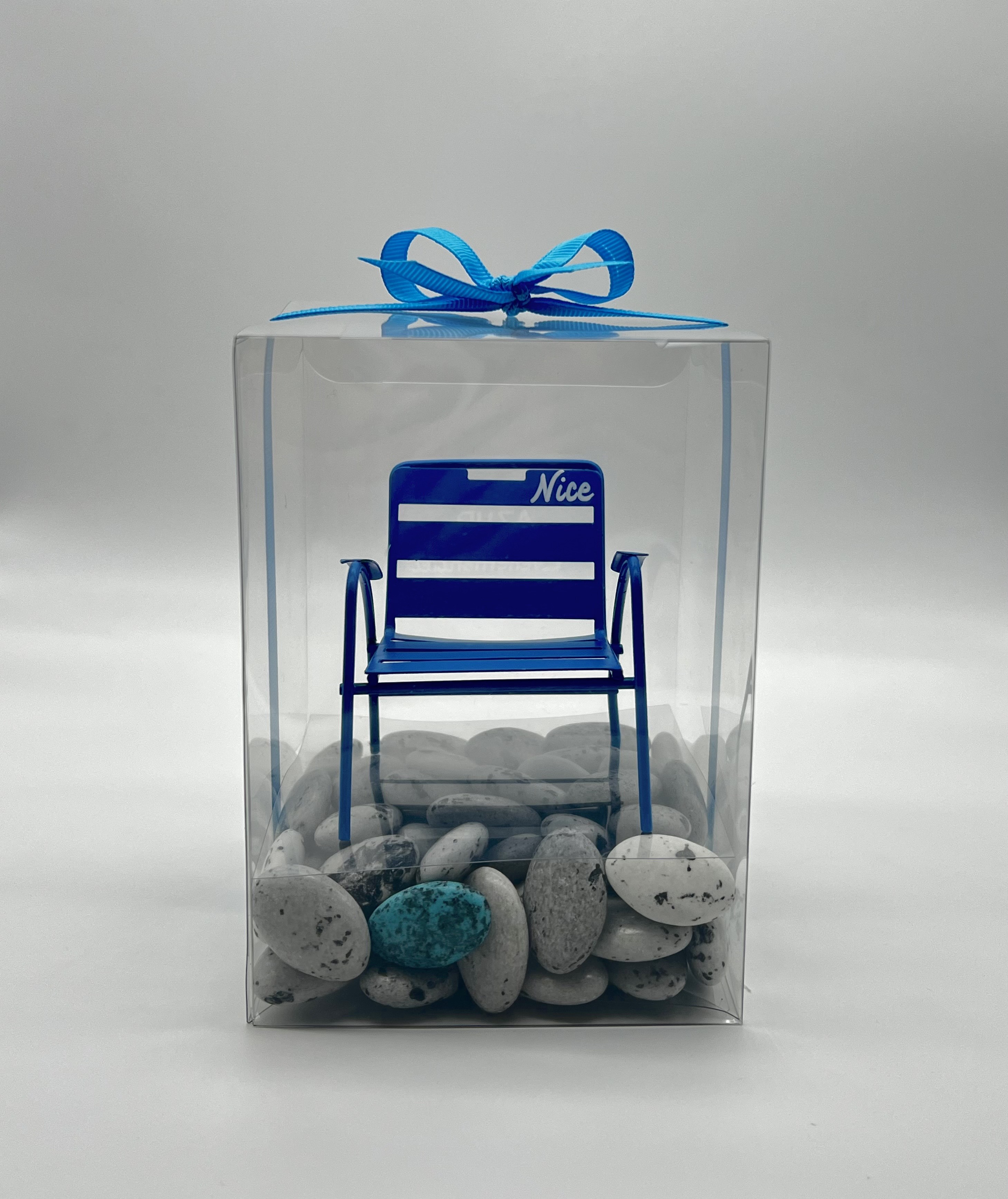 Depuis les années 50, il est possible de les admirer assis sur les iconiques Chaises Bleues ou en marchant le long de la Promenade des Anglais. Le Galet Bleu, c'est aussi une confiserie exclusive au chocolat qui vous permet d'offrir et de déguster un peu de l'histoire de la ville de Nice.