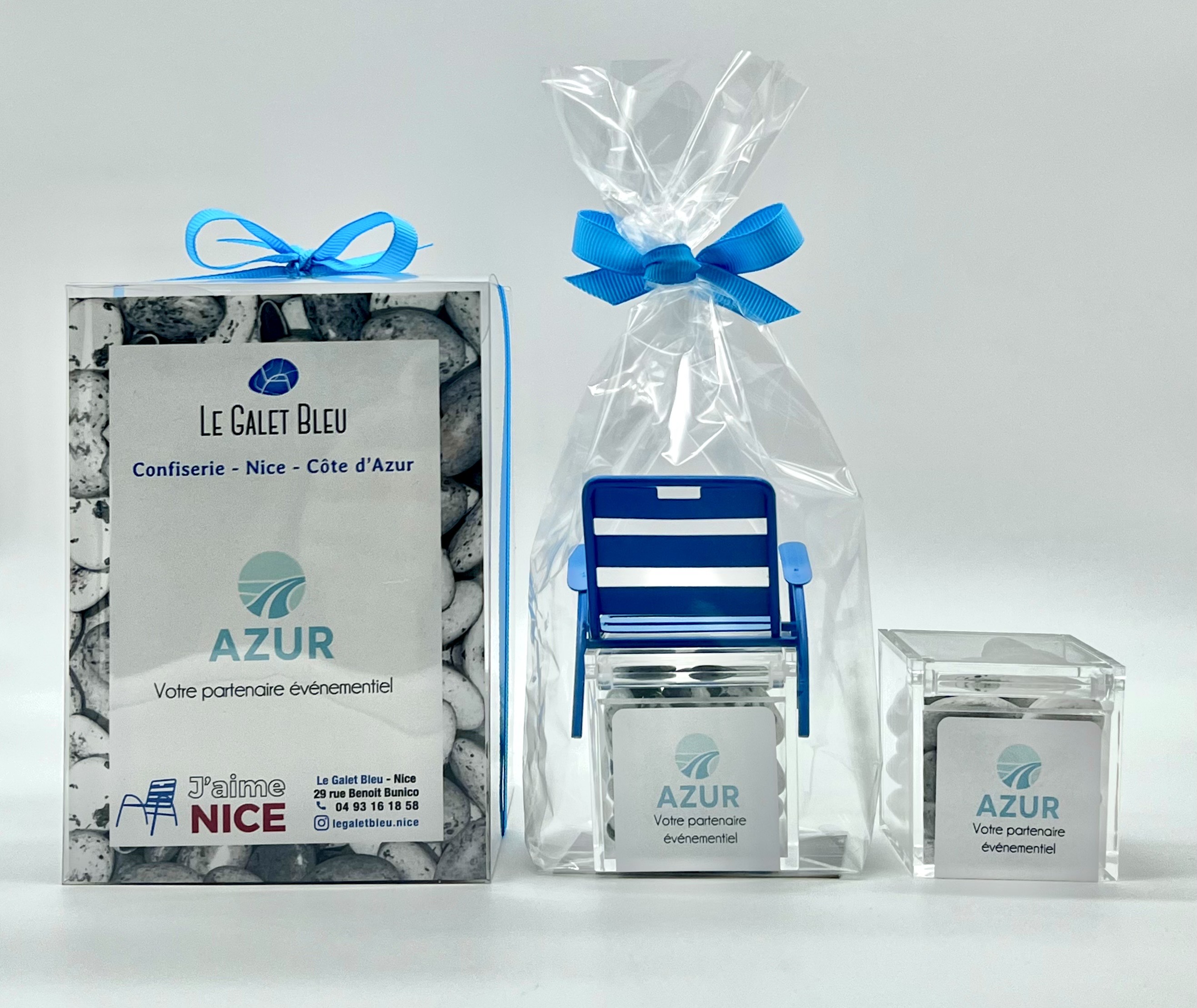 Le Galet Bleu vous propose aussi un service de personnalisation pour vos cadeaux professionnels et vos fêtes de famille. Quelque soit votre budget nous pouvons, dans un délai court, personnaliser vos cadeaux, pour qu’ils soient uniques et toujours gourmands.